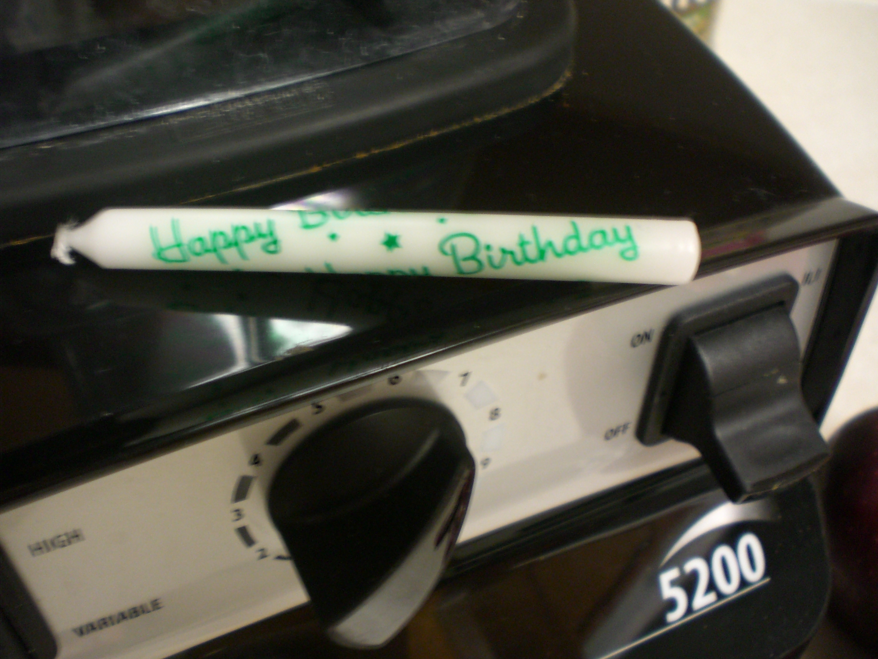 I was just thinking about how I have probably had my Vita-mix for about a year now, so I decided to check. I found my receipt dated January 17, 2009, so I am just a few days late. Oh, well. Happy 1st Birthday Vita-mix! Here she is: